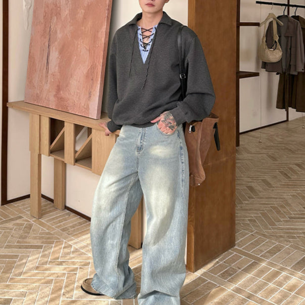 Vネックレースアップカットソー(3COLOR)CT1166