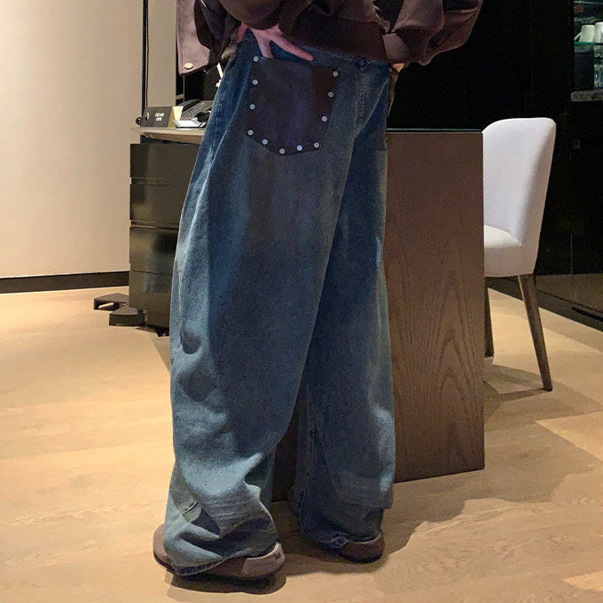 レザーポケットデニムパンツCB1077